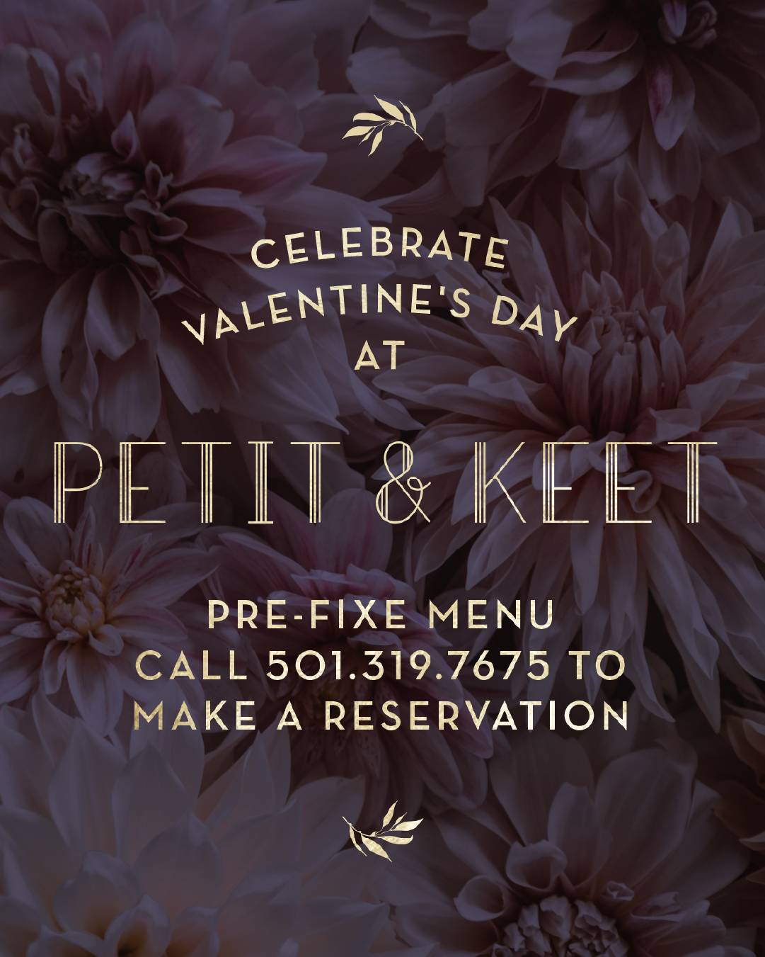 Enjoy a special pre-fixe Valentine’s Dinner at Petit & Keet on Saturday, February 14th! Call 501-319-7675 to book your spot. Tap below to see the menu!